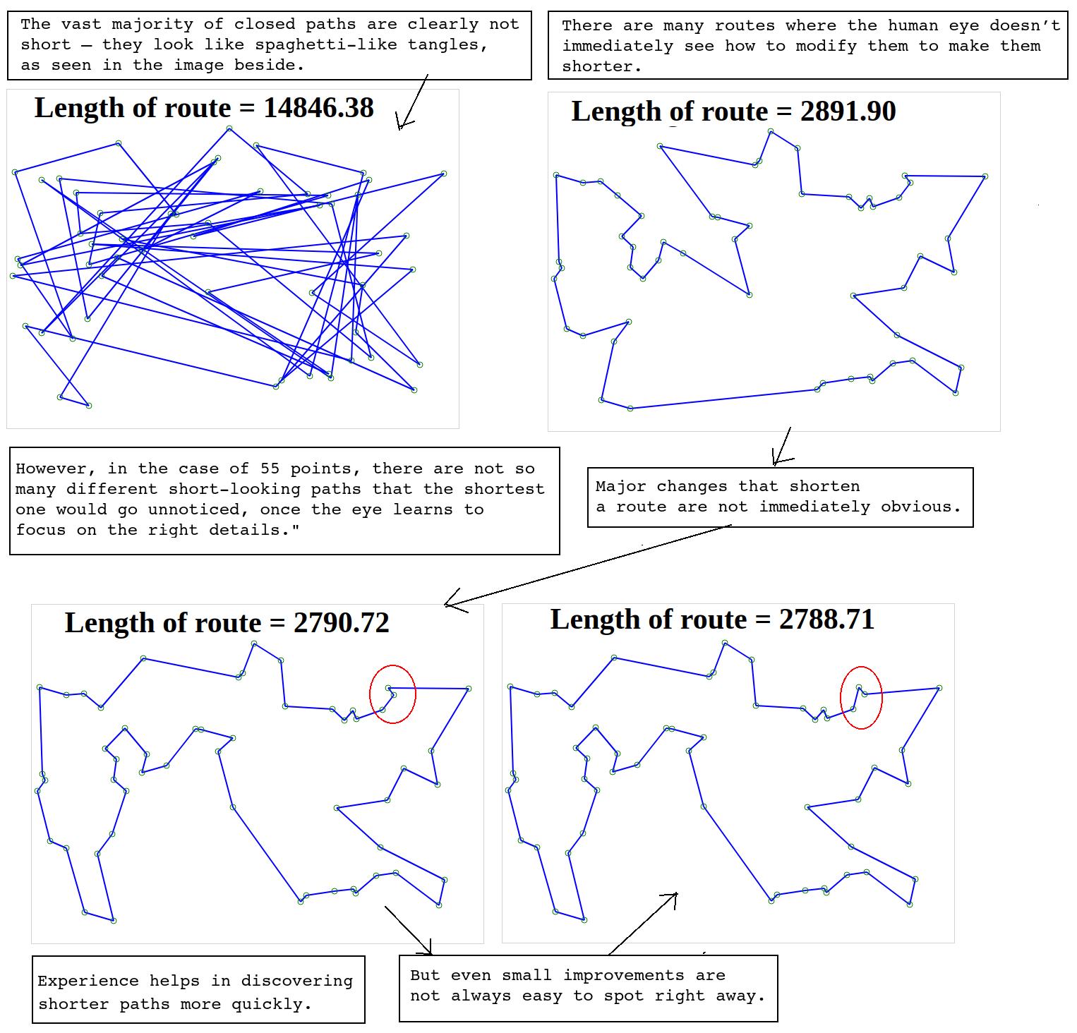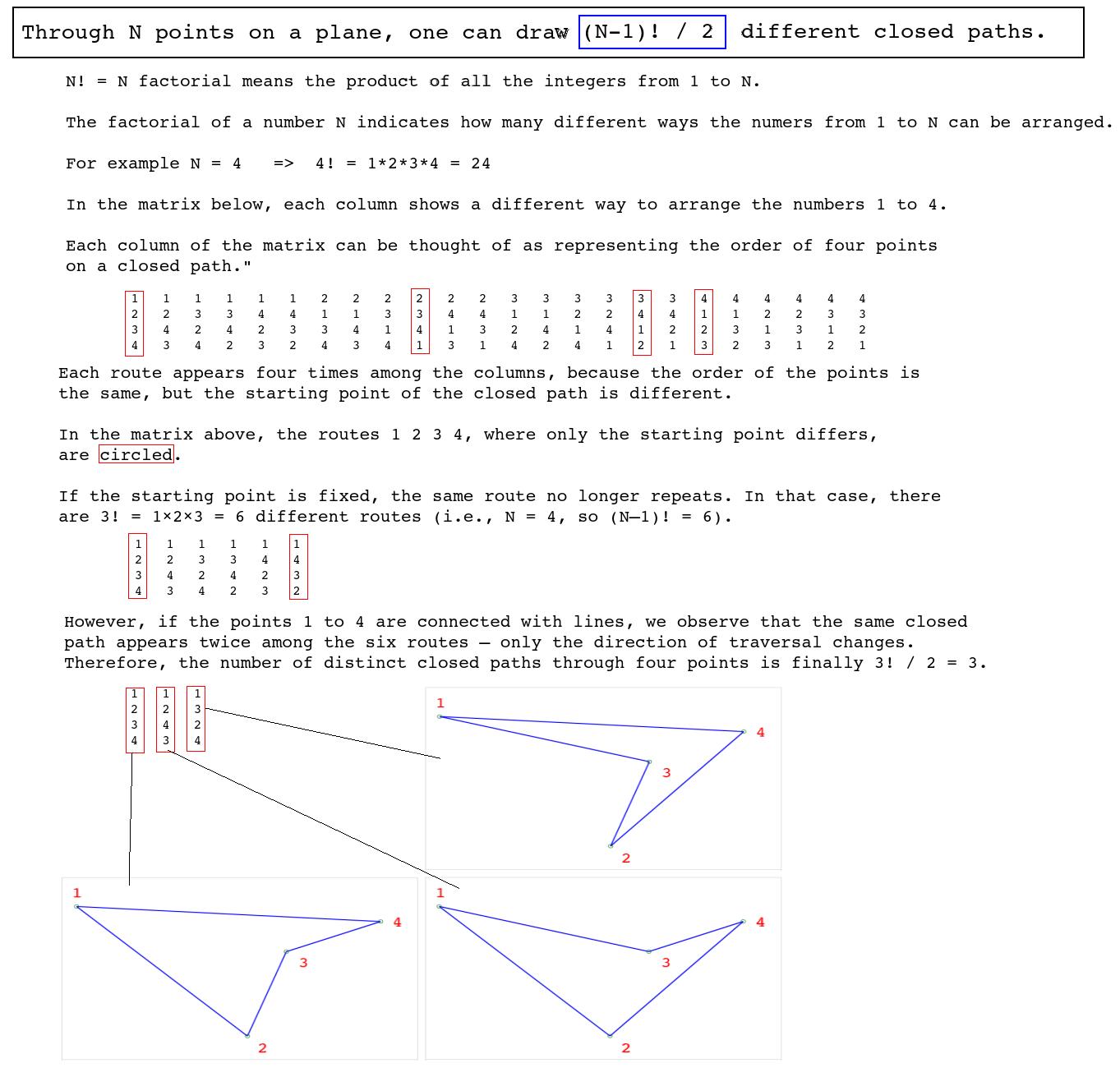 If there are 55 points in the plane, the number of distinct closed paths is astonishingly huge.